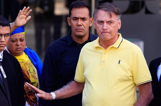 Wilton Júnior/Estadão ConteúdoCumprindo prisão domiciliar há pouco menos de duas semanas, o ex-presidente Jair Messias Bolsonaro (c) deixa o Hospital DF Star, em Brasília (DF