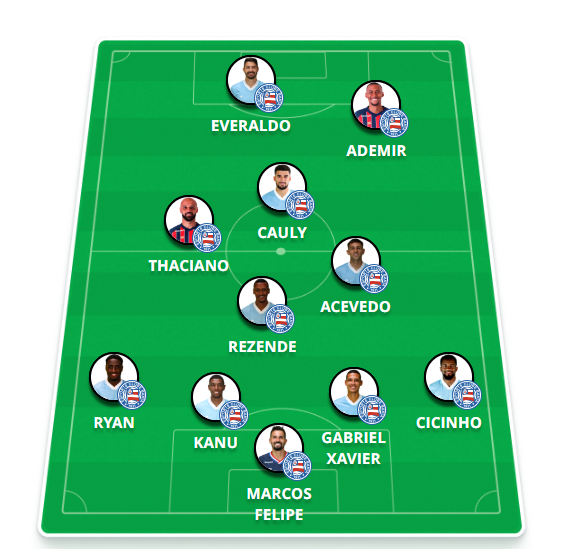 Time provável: Marcos Felipe, Cicinho, Gabriel Xavier, Kanu e Ryan [Matheus Bahia]; Rezende, Acevedo, Thaciano e Cauly; Ademir e Everaldo.