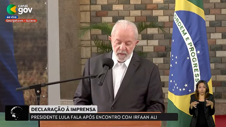 Lula durante discurso após reunião com o presidente da Guiana, Mohamed Irfaan Ali