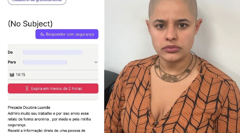 “Prezada Doutora Luanda. Admiro seu trabalho e por isso envio esse relato de forma anônima, por medo e pela minha segurança. Recebi a informação direta de uma pessoa de confiança e que trabalha no […] e me colocou que o […] esbravejou que está querendo te matar e vendo meios para isso, por isso preze pela sua segurança e pela sua vida. A sua vida vale muito para as mulheres”, informa a mensagem.