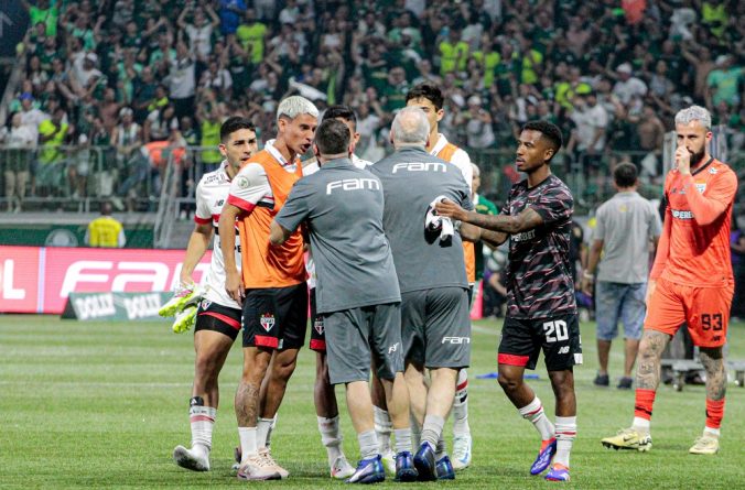 “No total, Palmeiras e São Paulo pagarão multa de R$ 250 mil por infrações cometidas pelos atletas Zé Rafael, Rodrigo Nestor e Sabino”, anunciou o tribunal esportivo. Zé Rafael poderá enfrentar o Atlético-MG no estádio Brinco de Ouro, em Campinas, no sábado, enquanto Rodrigo Nestor e Sabino são reforços para Luis Zubeldía armar o São Paulo para o clássico agendado para o Mané Garrincha, em Brasília, no domingo. Depois do apito final no Allianz Parque, com vitória palmeirense por 2 a 1, ocorreu uma grande confusão no túnel de acesso aos vestiários.