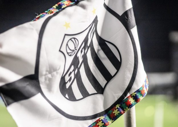 Bandeirinha de escanteio do Santos com homenagem às pessoas com autismo