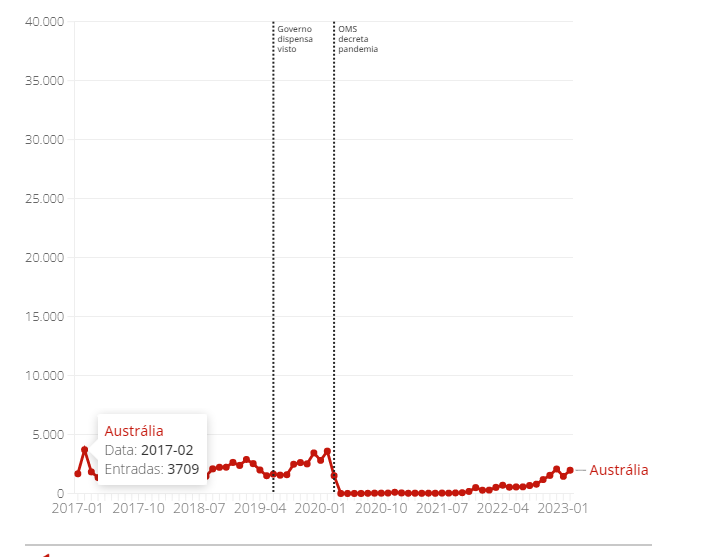 Entradas de Australianos no Brasil